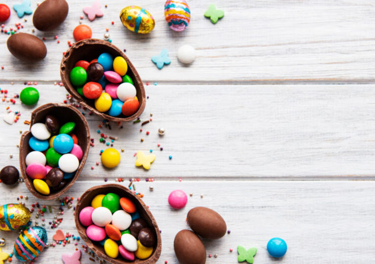 You can never go wrong with a classic hunt with lots of candy. Fill some colorful eggs with jelly beans, chocolates, or even Peeps! Pick your favorite candy and run with it. Shake those jelly bean eggs for a fun memory from childhood. Just be careful not to put chocolate eggs in the sun…
